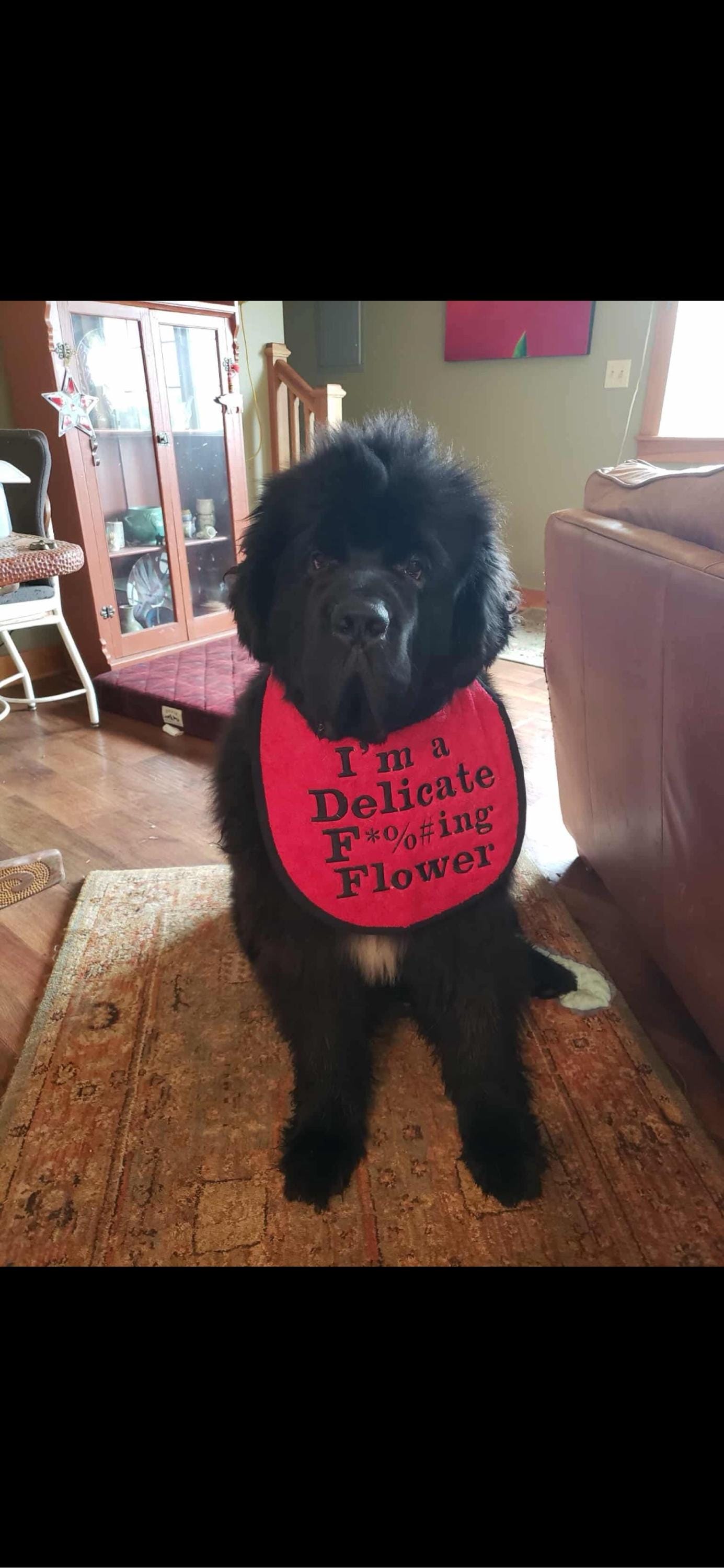 I sent this to my girlfriend who has a big drooly Newfoundland. She loves it! She says she has many bibs, but this is the best one because it’s made the best and he can get the other ones off. I would definitely recommend this. Plus, it’s so darn adorable.