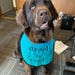 I can make to order these bibs are about 11 drop with a 19 inch to 21 inch neck, I can make this smaller or larger just leave a message at checkout , if you have a certain saying or dog you would like or even a pets name please let me know and I can do that for you x