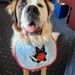 I can make to order, these bibs are about 15in drop with a 19inch to 27 inch neck, I can make this smaller or larger just leave a message at checkout , if you have a certain saying or dog you would like or even a pets name please let me know and I can do that for you x