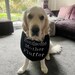 I can make to order these bibs are about 15in drop with a 19inch to 21 inch neck, I canmake this smaller or larger just leave a message at checkout , if you have a certain saying or dog you would like or even a pets name please let me know and I can do that for you x