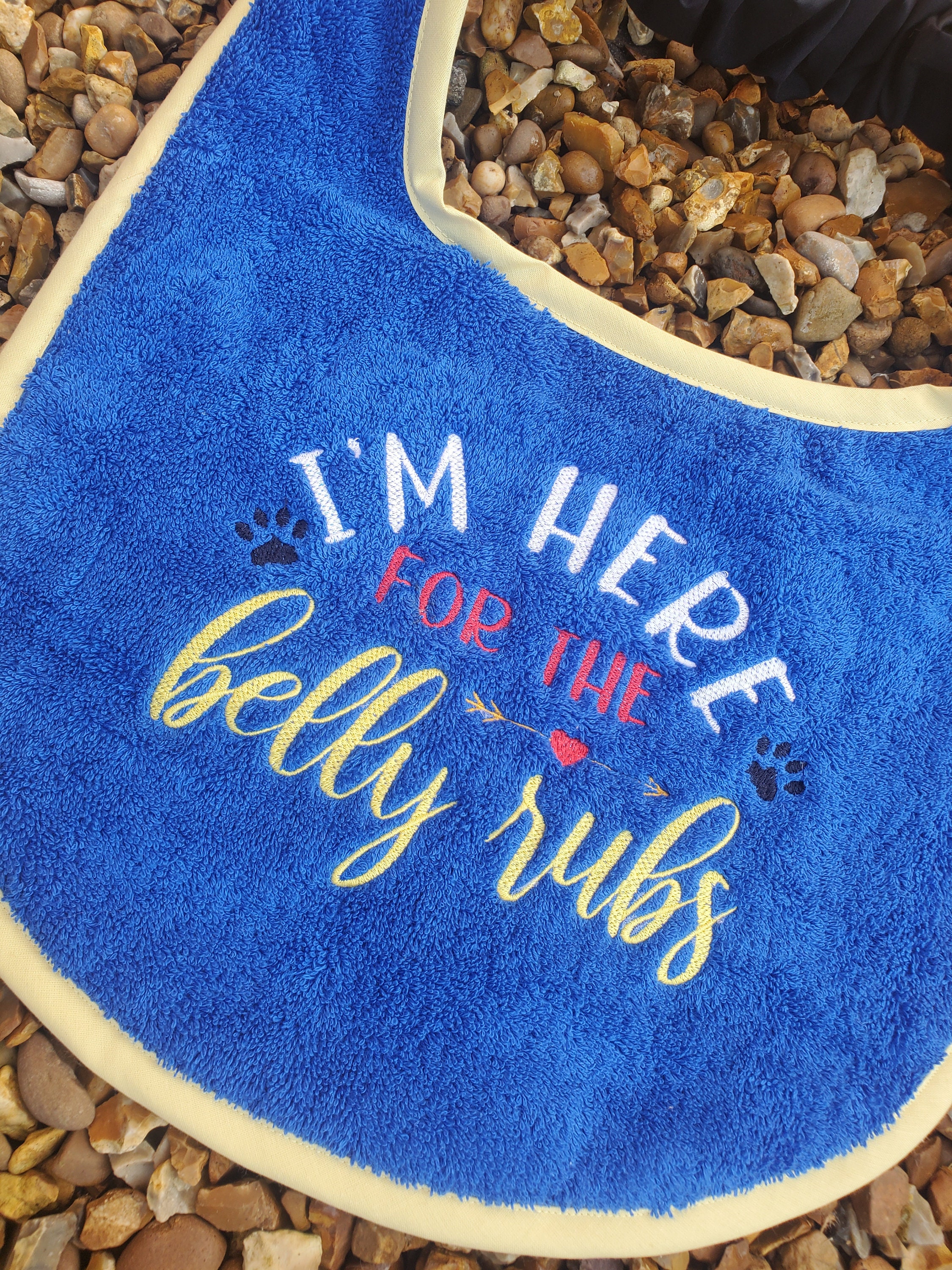 The design of the drool bib has been made for your dogs comfort in mind , Exclusive pattern can be made in many colours .