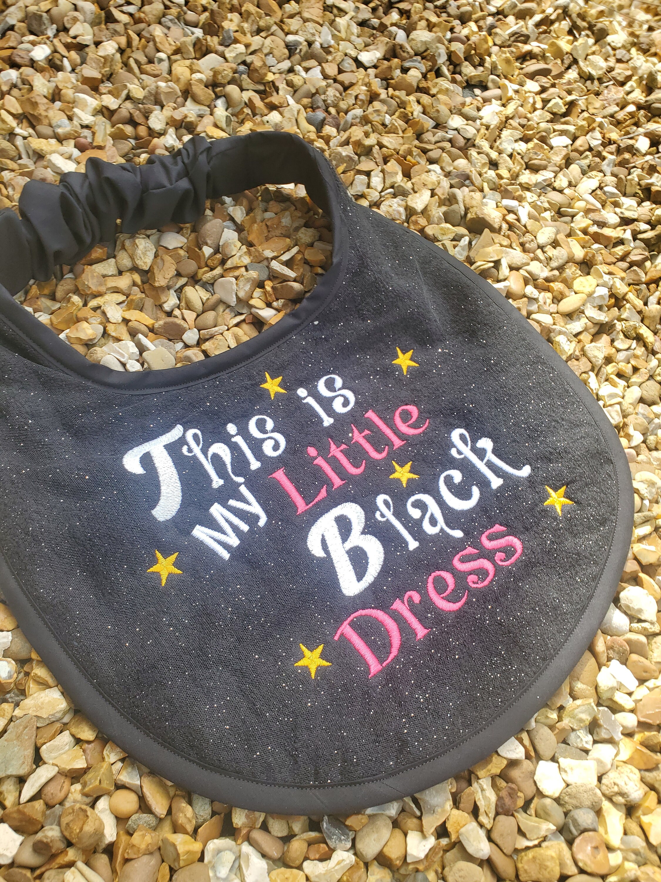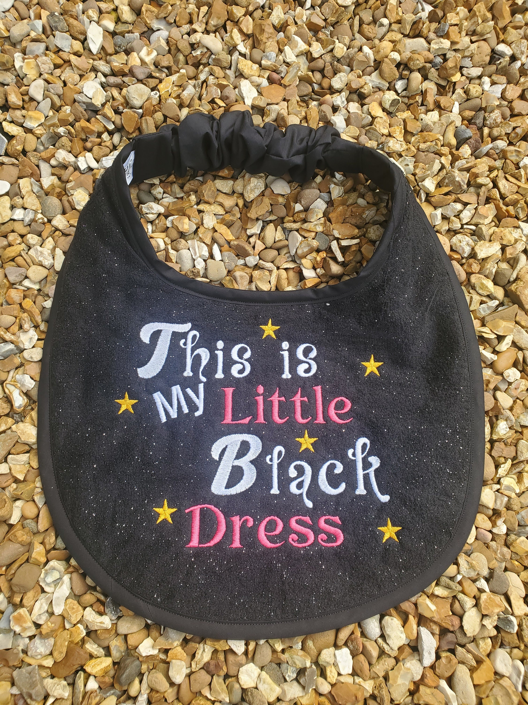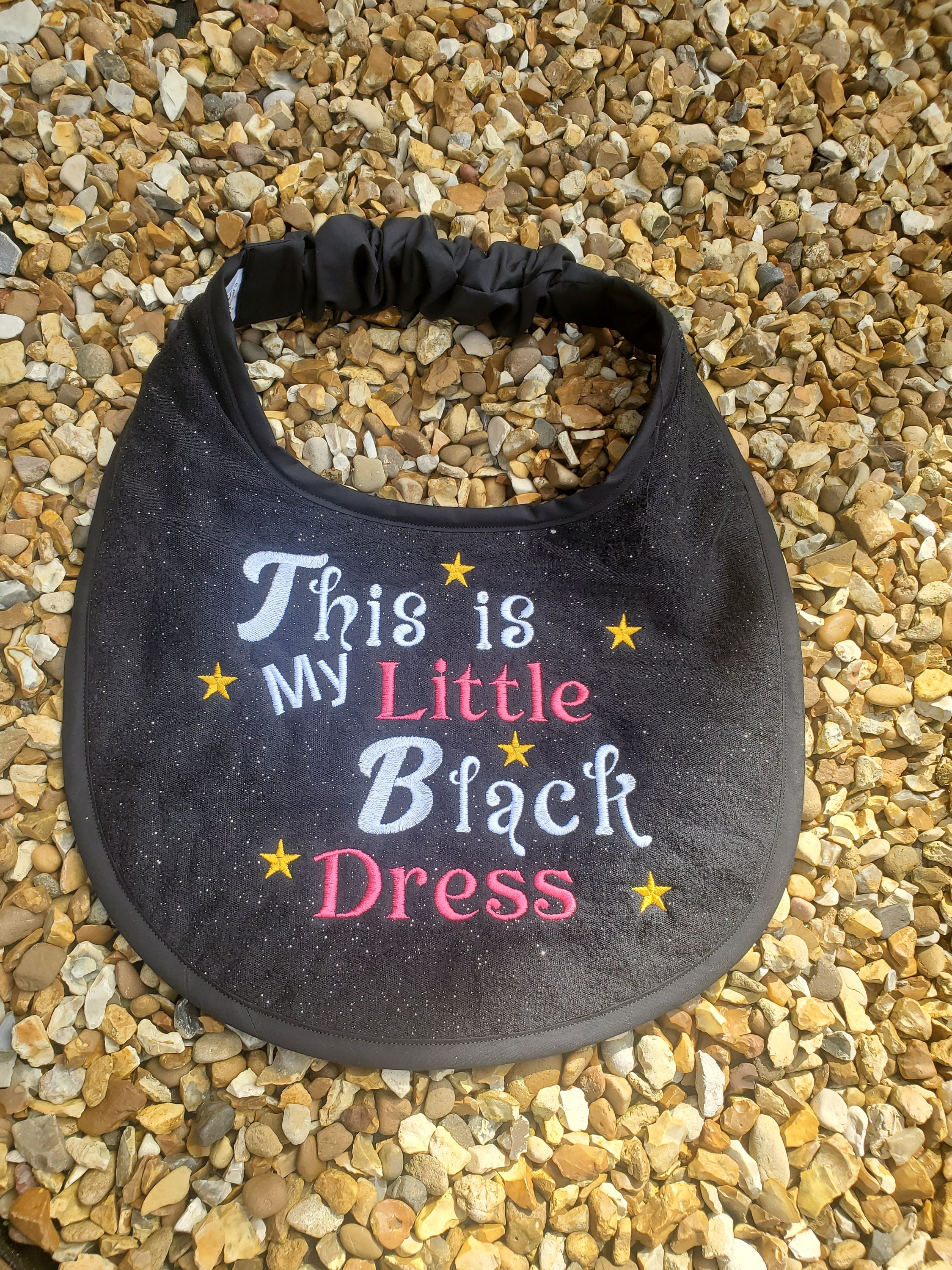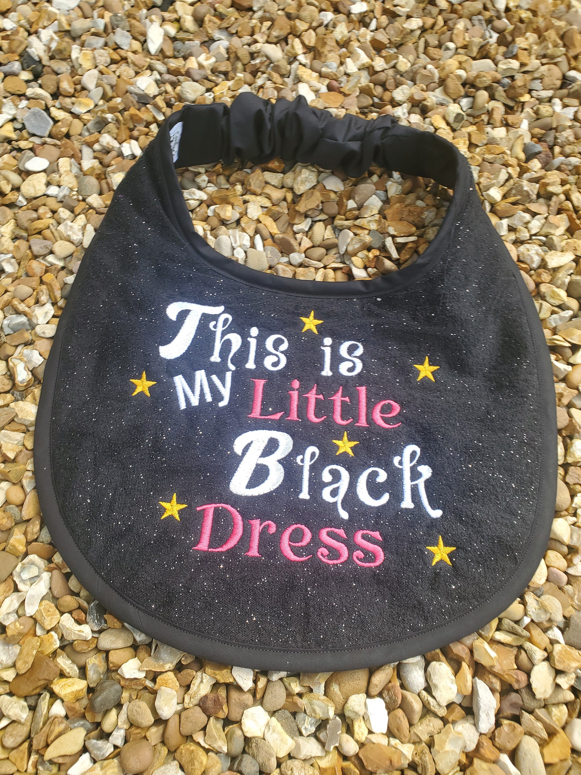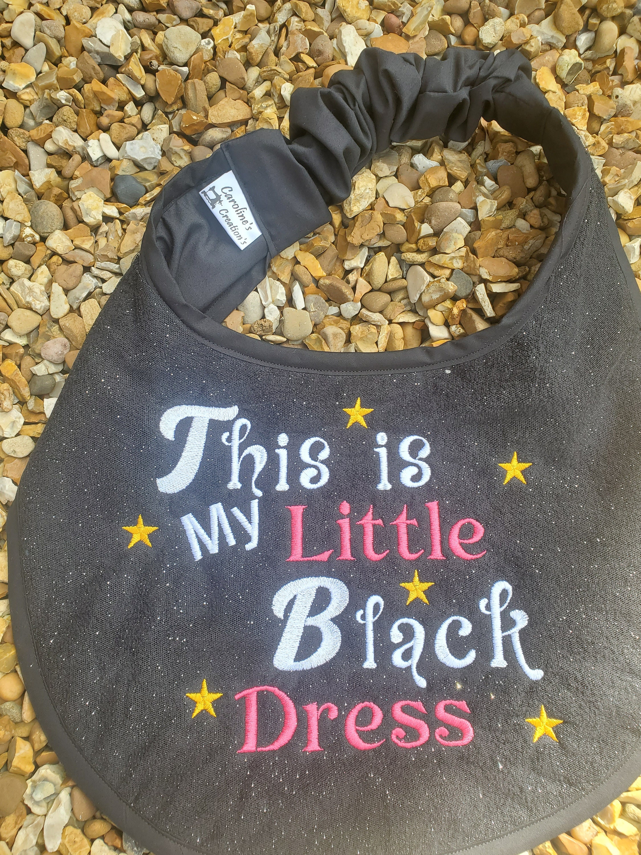 Caroline's Creations presents this multicoloured bib, unbranded and proudly made in the United Kingdom, with a theme that suits any occasion. Easy to clean and easy to love, this bib is a practical and stylish choice for your large breed friend.handmade large breed dog slobber drool bibs made with 100% cotton terry toweling . can also have a layer of glitter tule over the terry towel before stitching the design . also backed with cotton fabric , elasticated neck band covered in cotton lining ,