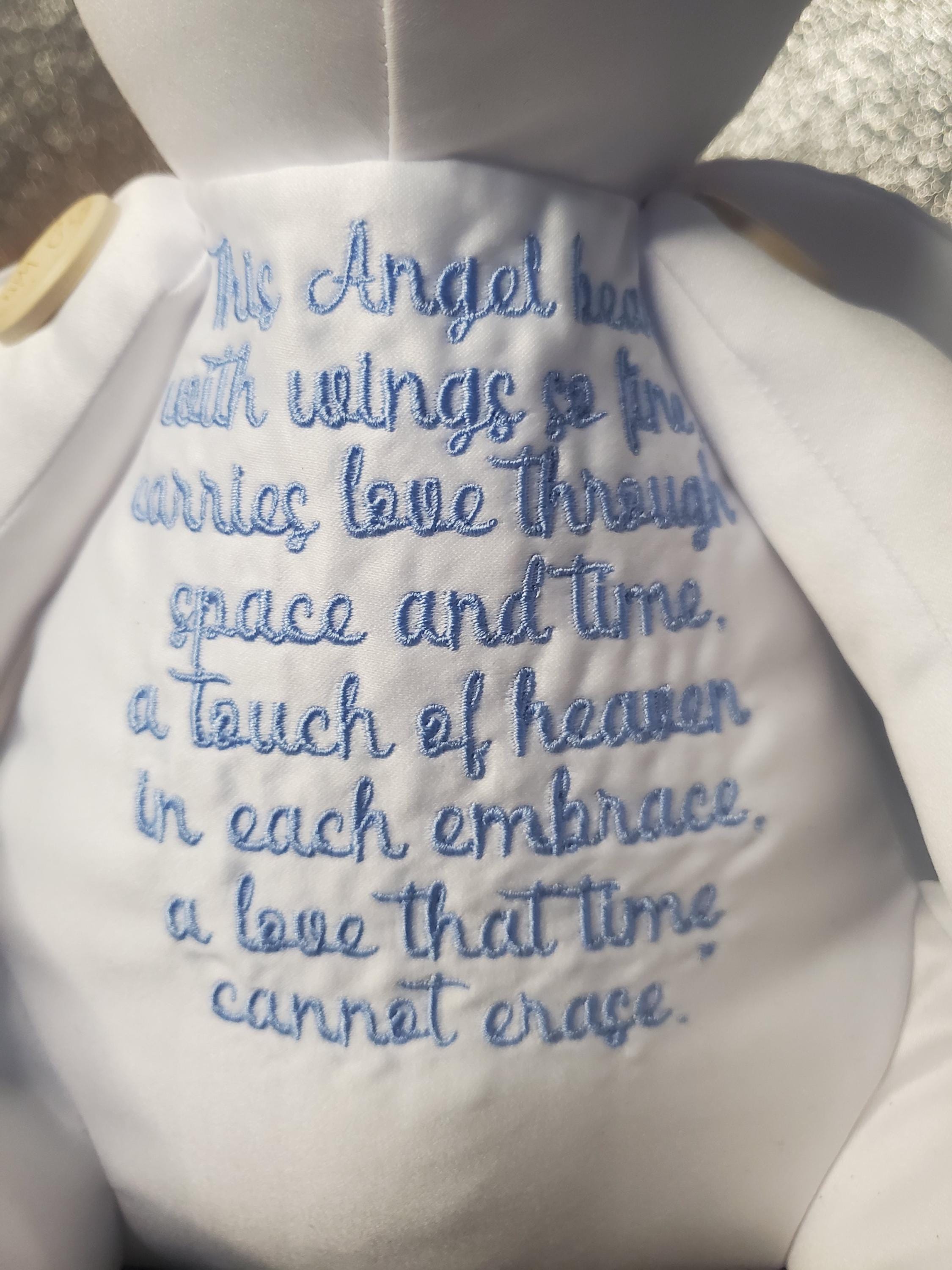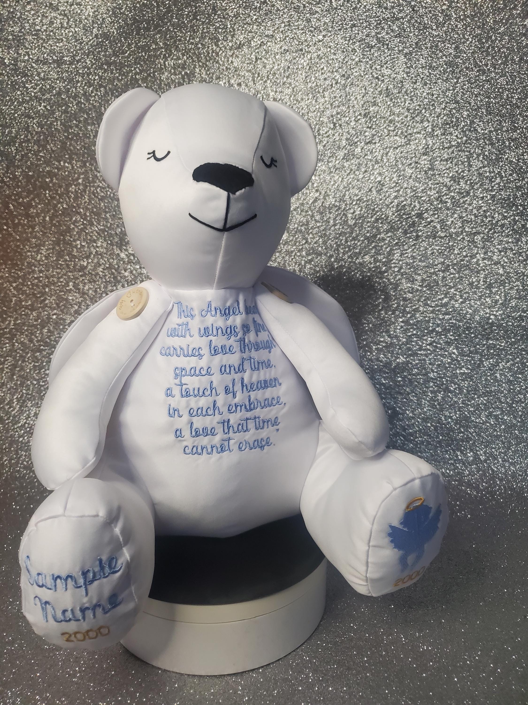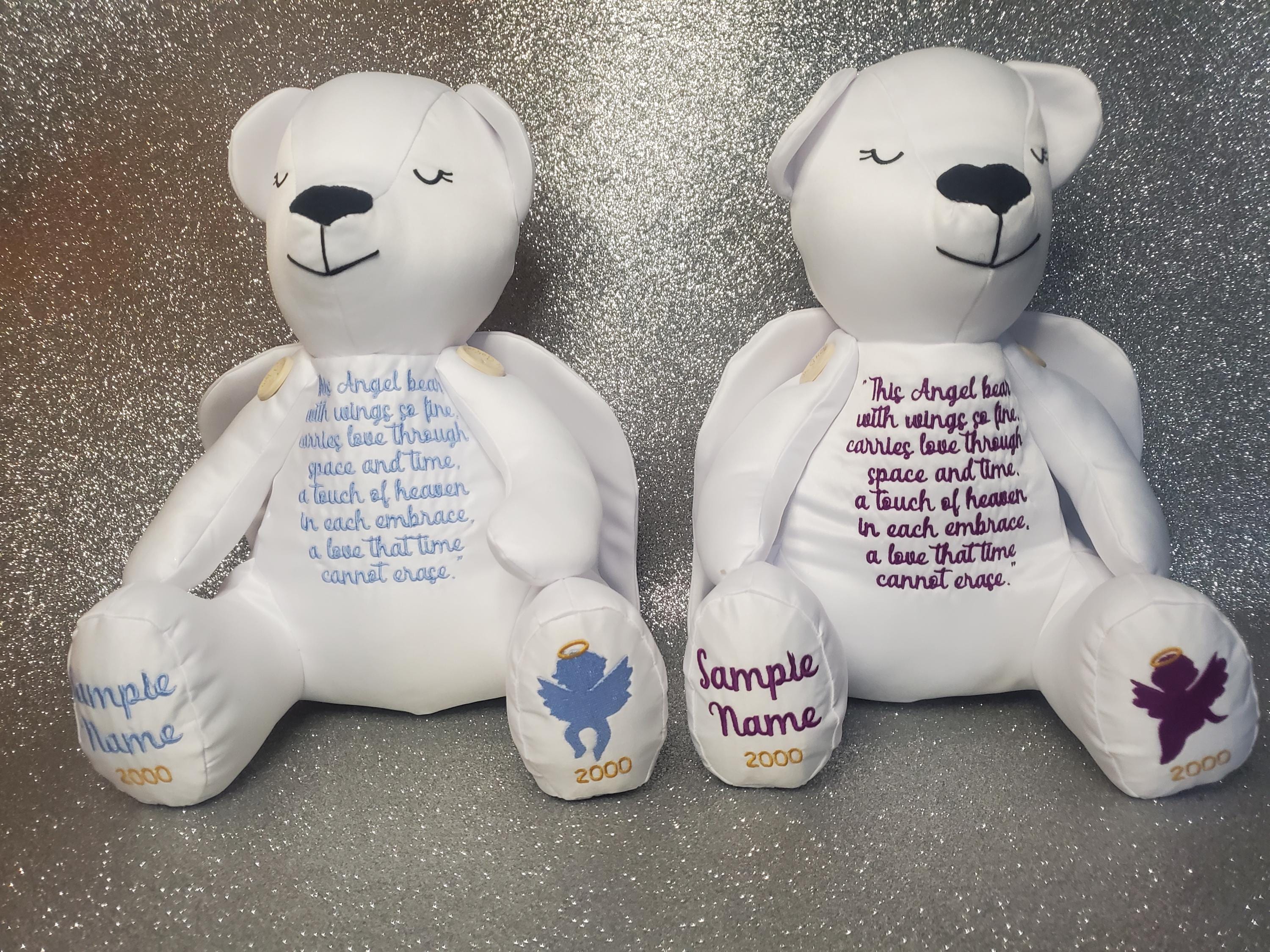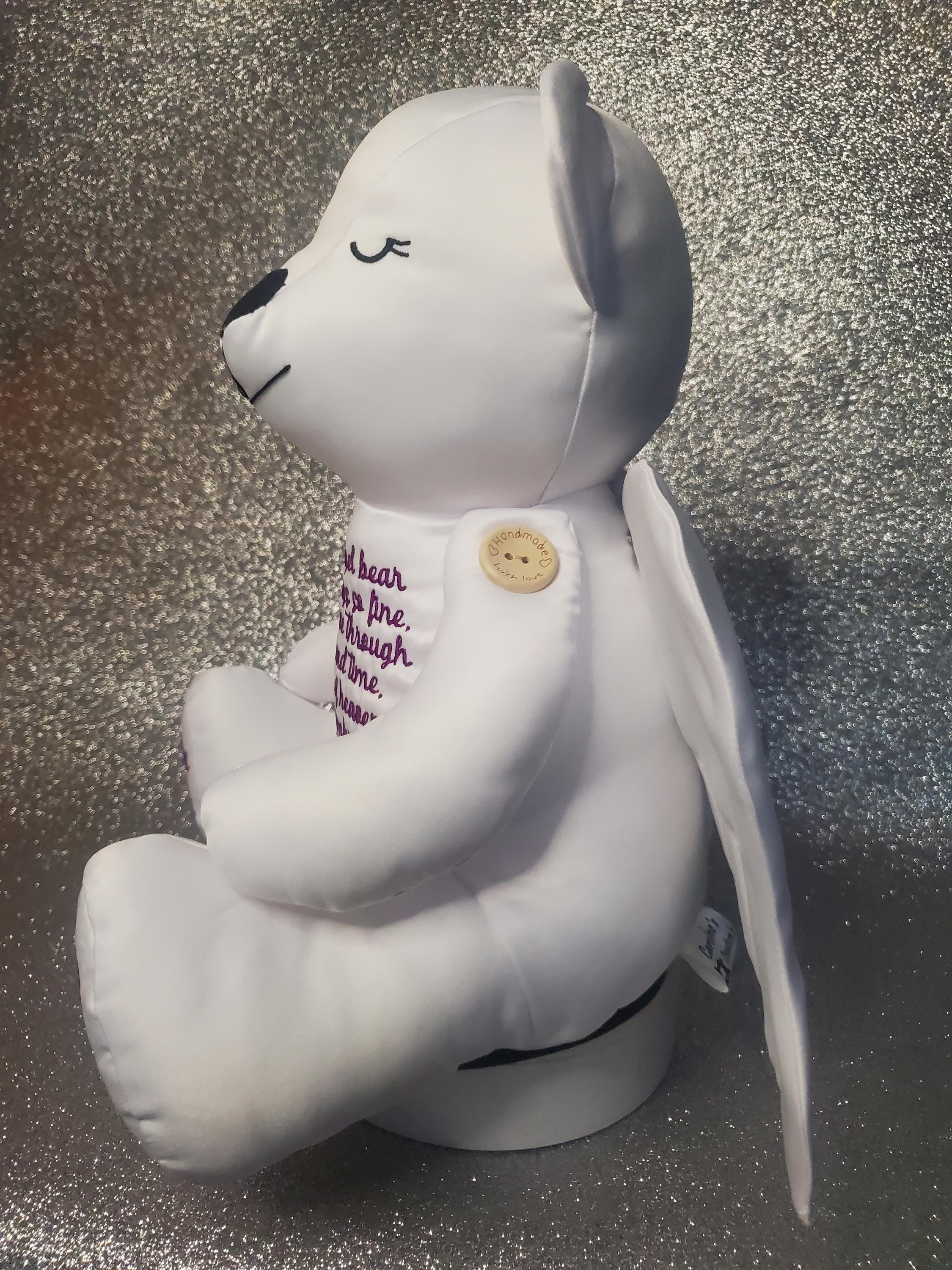Memory bears are a perfect way to memorialize a loved one! The bear is an excellent size to hold at night or display on a shelf.