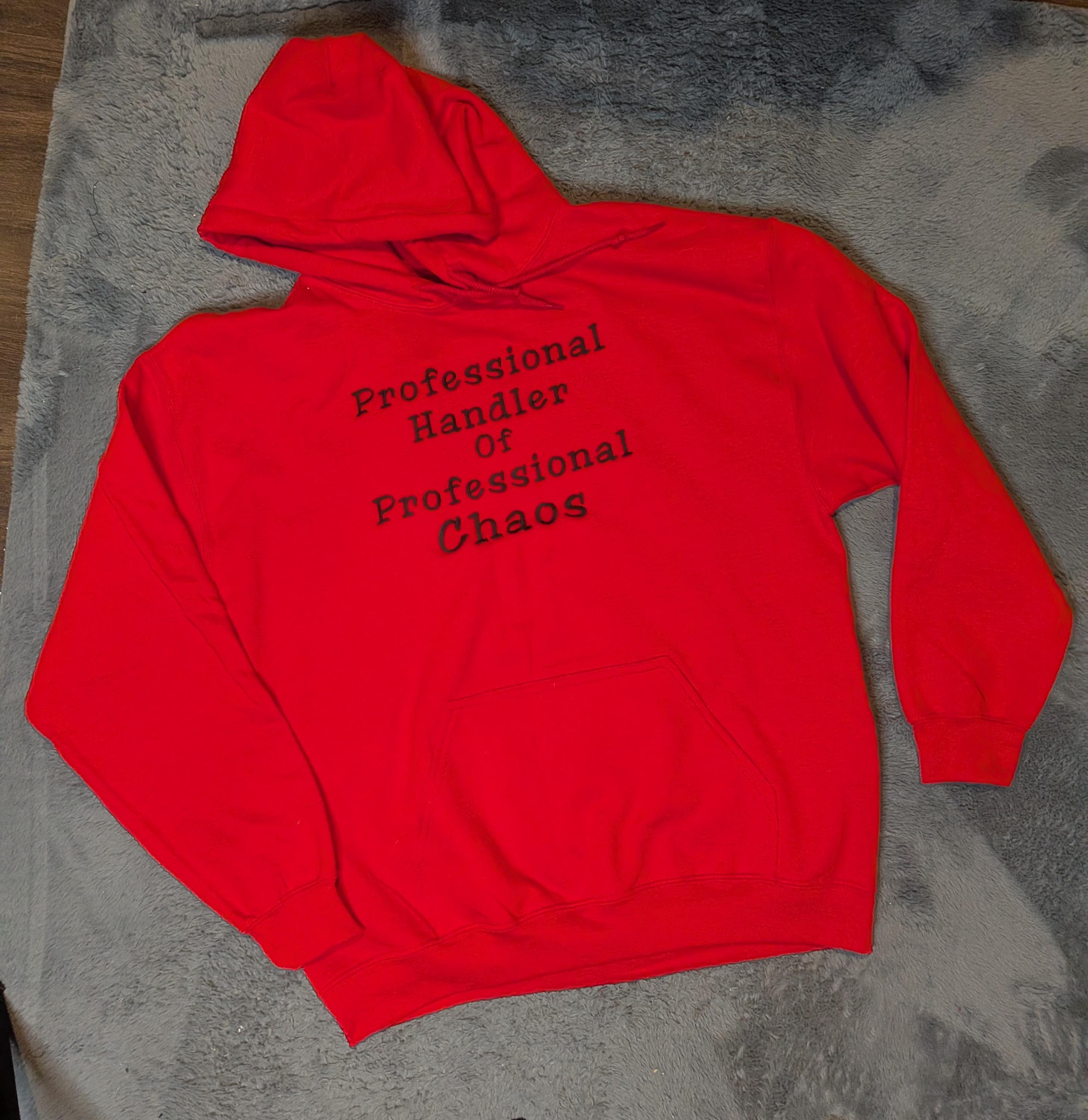 This bold red hoodie says what everyone already knows — you’re the Professional Handler of Professional Chaos. Perfect for dog show handlers, groomers, busy parents, teachers, or anyone who manages life’s daily whirlwind with humor.
