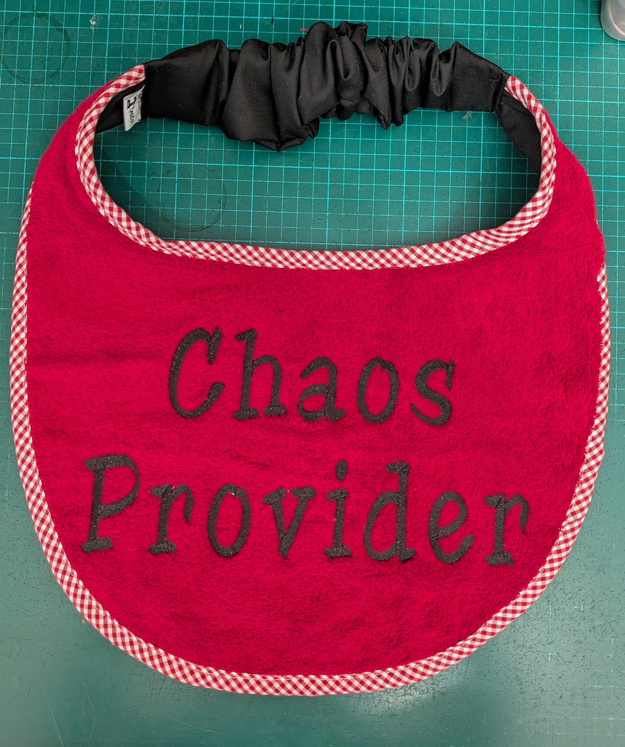 • “Chaos Provider” embroidered in black