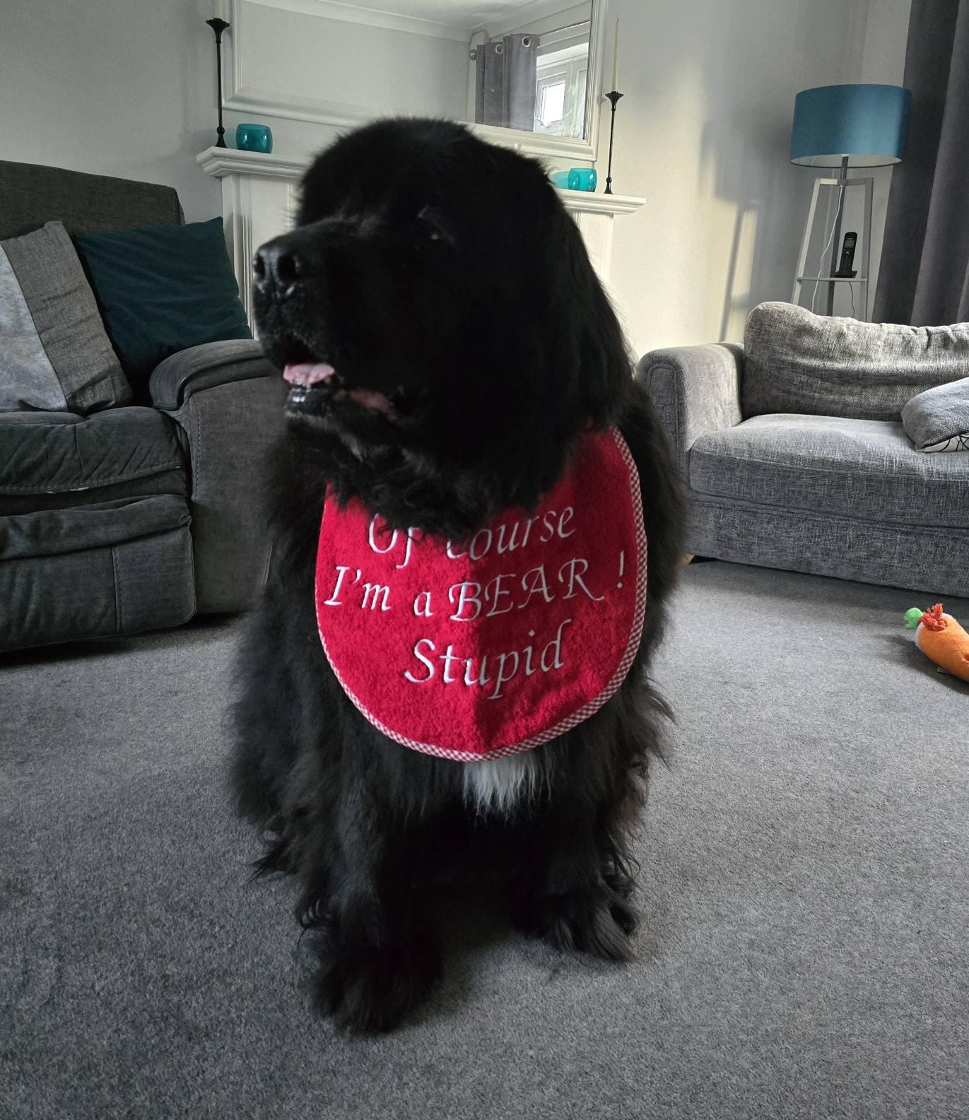 Caroline's Creations presents this multicoloured bib, unbranded and proudly made in the United Kingdom, with a theme that suits any occasion. Easy to clean and easy to love, this bib is a practical and stylish choice for your large breed friend.Large breed dog slobber drool bib made with 100% cotton terry towel , ideal for your Newfoundland elasticated collar covered in cotton fabric to match the backing cotton fabric , If you would like to have one made to order personalised please let me know x