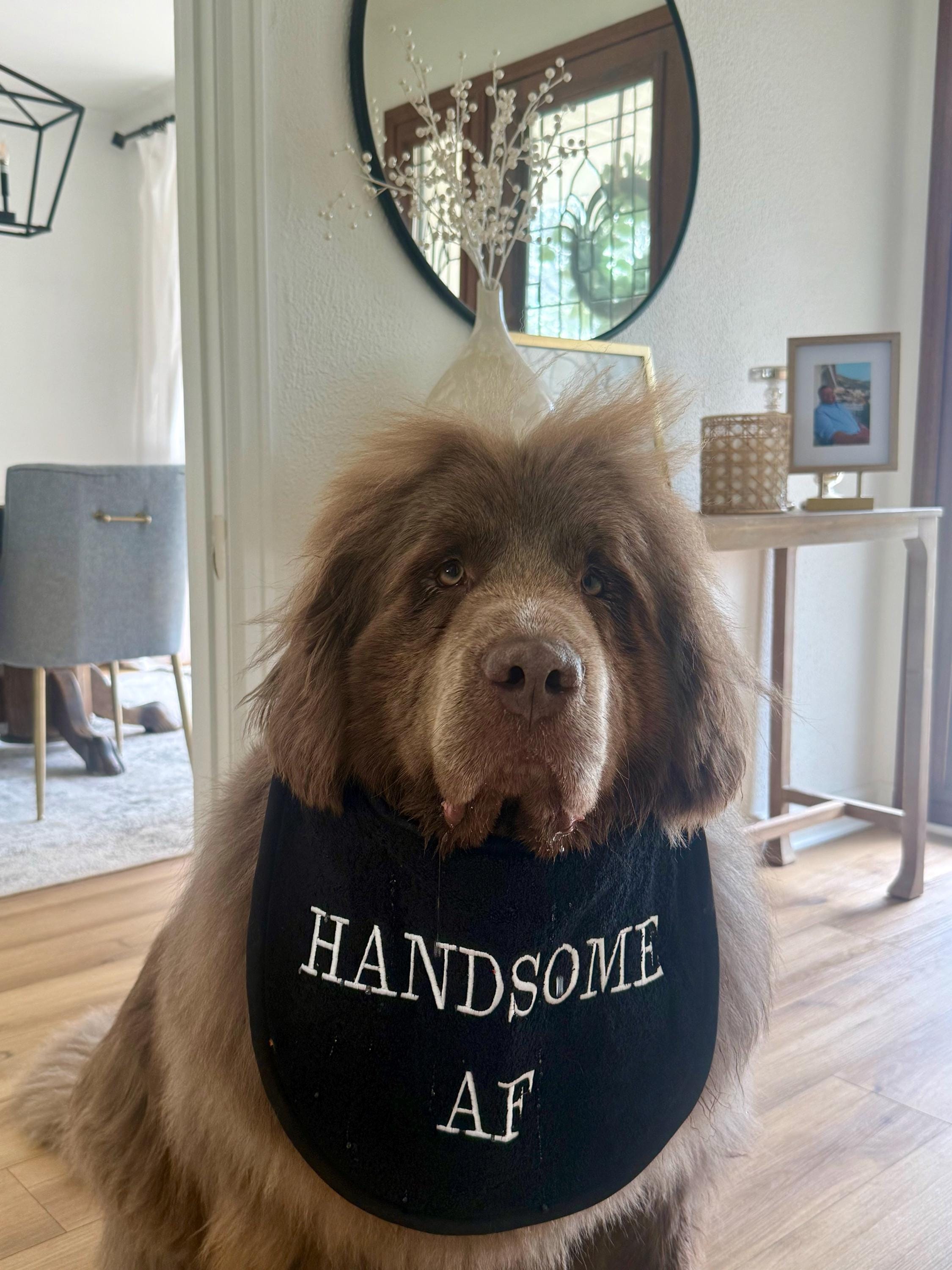 Made from super absorbent Terry Towel material, it's perfect for soaking up drool and debris during meals and drinks. The bib features a comfortable, adjustable fit to suit XXL breeds like Newfoundlands, ensuring a snug and secure fit without restricting your pet's movement. Add a personal touch with the option to customise the bib with your dog's name, making mealtime a little more pup-friendly.