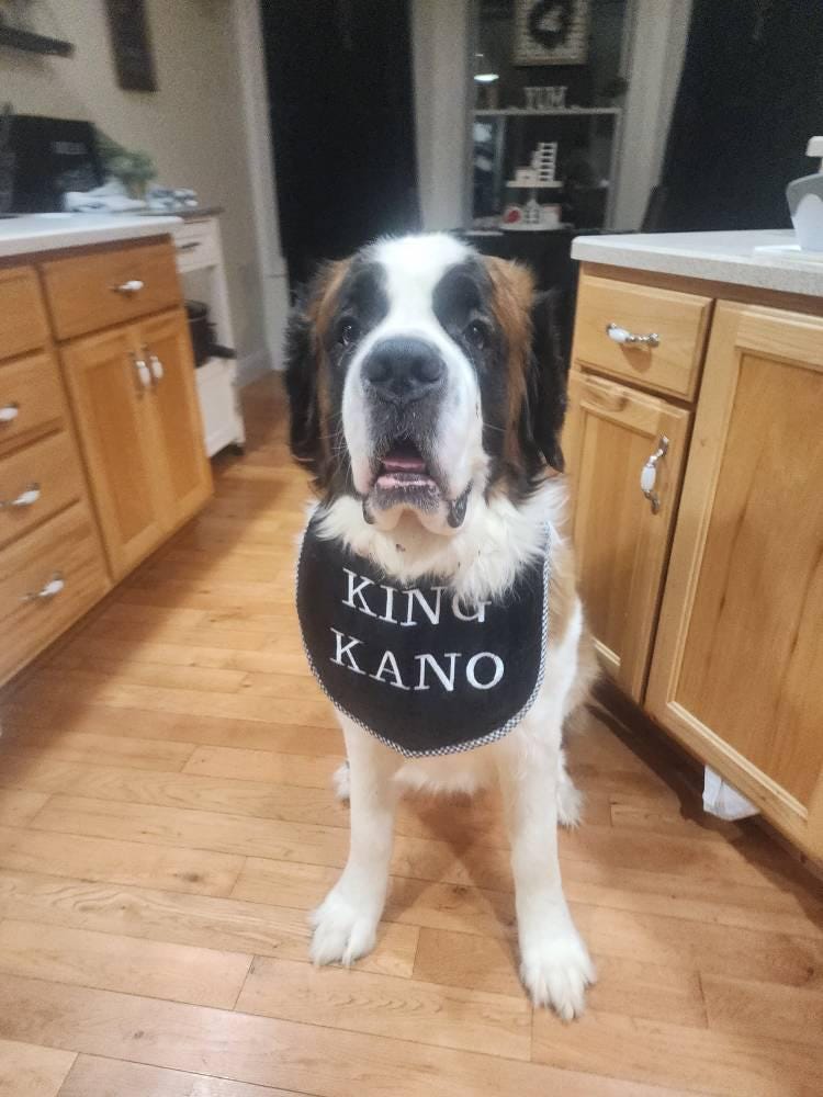 My dog LOVES his new bib! It's adorable, functional, and a perfect fit for my Saint Bernard. We have purchased several bibs from this seller and love them all.