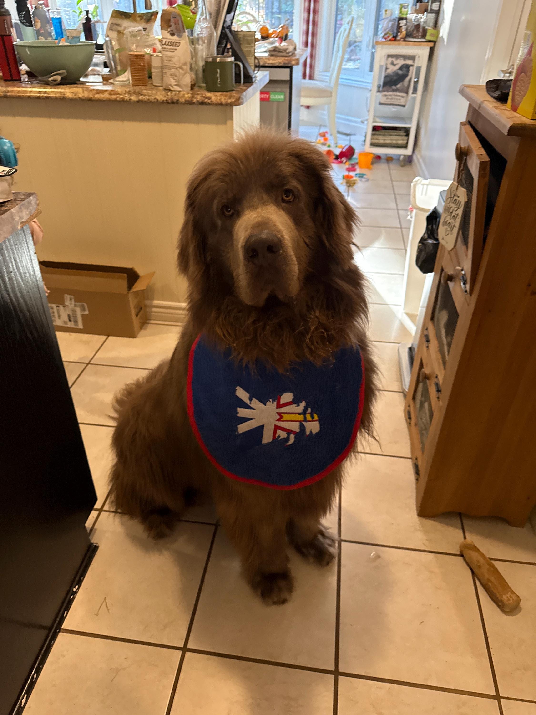 I figured since I own Newfoundland and I'm from Newfoundland myself what better bib to get than this and it was so well done. Thank you very much.
