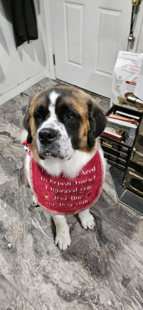 My 11 month old Caucasian Ovcharka gets very anxious in the car and slobbers everywhere, this bib is absolutely perfect and catches all that slobber! Love it!