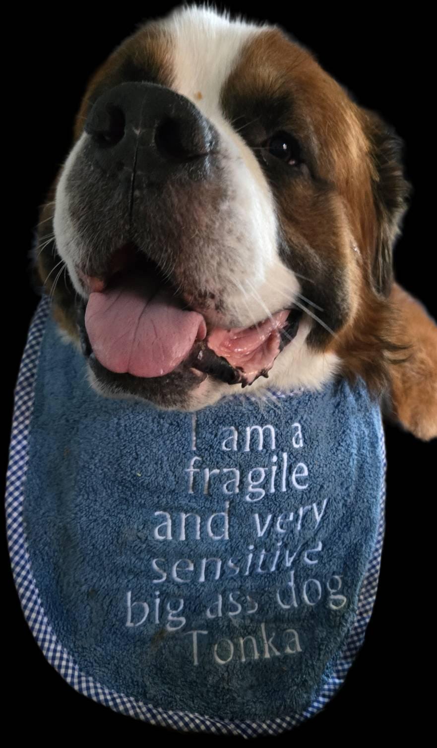 Made from super absorbent Terry Towel material, it's perfect for soaking up drool and debris during meals and drinks. The bib features a comfortable, adjustable fit to suit XXL breeds like Newfoundlands, ensuring a snug and secure fit without restricting your pet's movement. Add a personal touch with the option to customise the bib with your dog's name, making mealtime a little more pup-friendly.