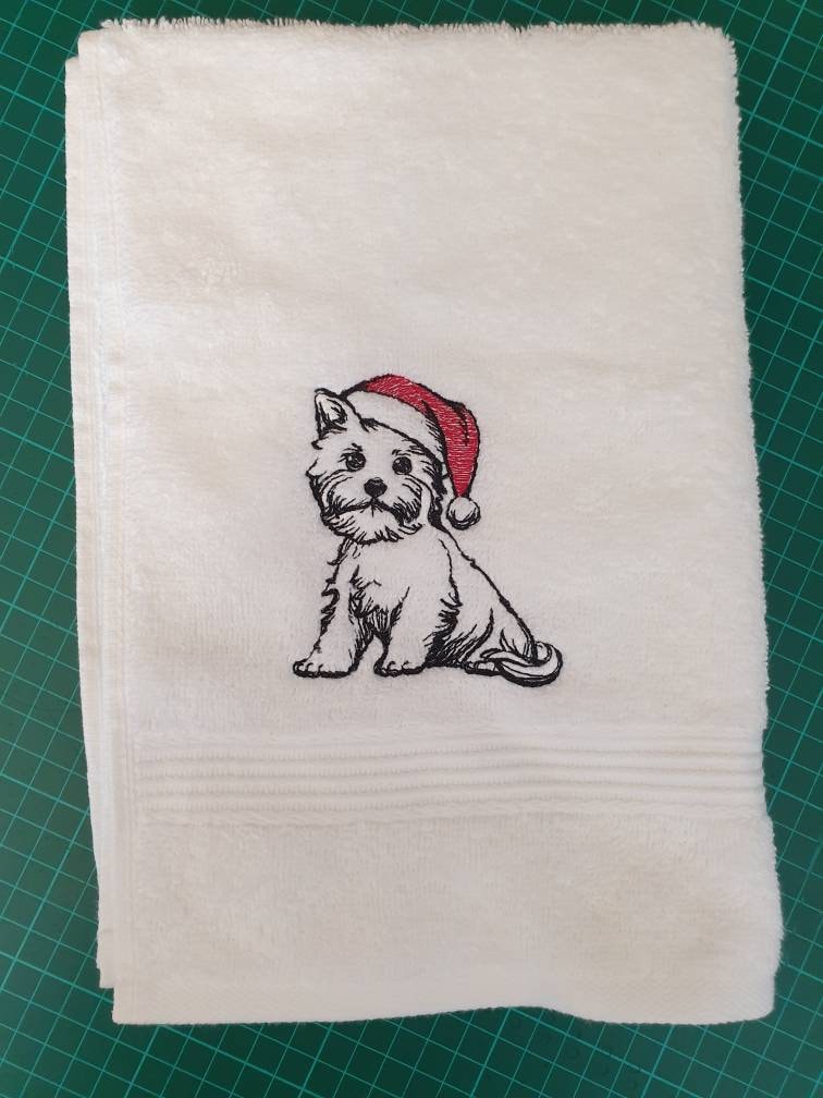 Embroidered guest towel tea towel size 40 x 60cm excellent quality 100% cotton . Handy hoop at the back to hang on a hook .