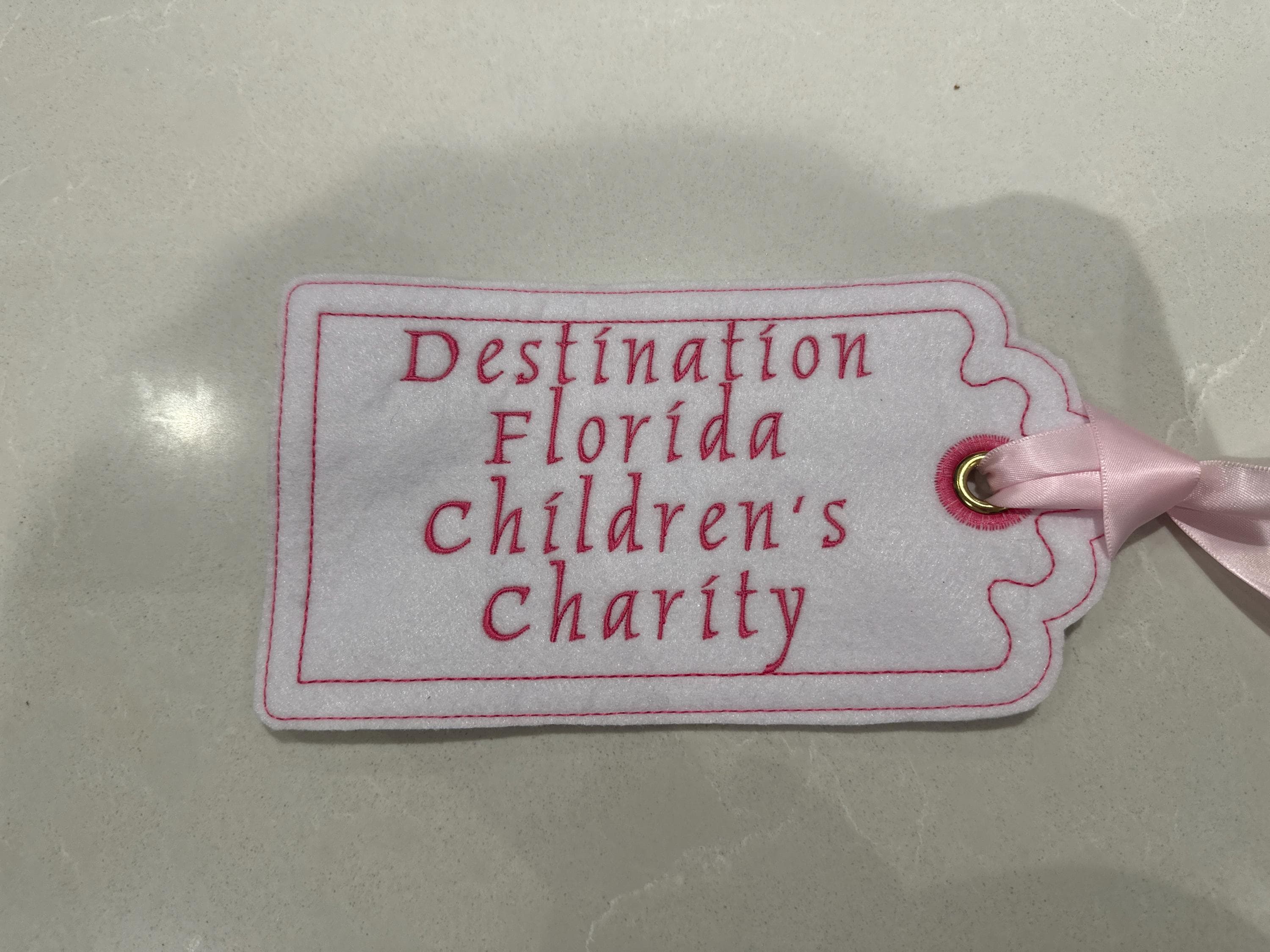 Tag is made of felt Embroidered with any name x with a bright red ribbon x